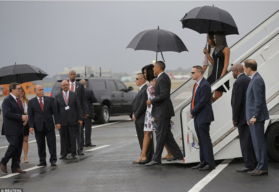 圖為奧巴馬和妻子米歇爾抵達(dá)古巴,走下飛機(jī)一幕。這次是美國(guó)與古巴關(guān)系的重大突破,自古巴導(dǎo)彈危機(jī)后,這兩個(gè)隔海相望的國(guó)家相互隔絕五十年之久。