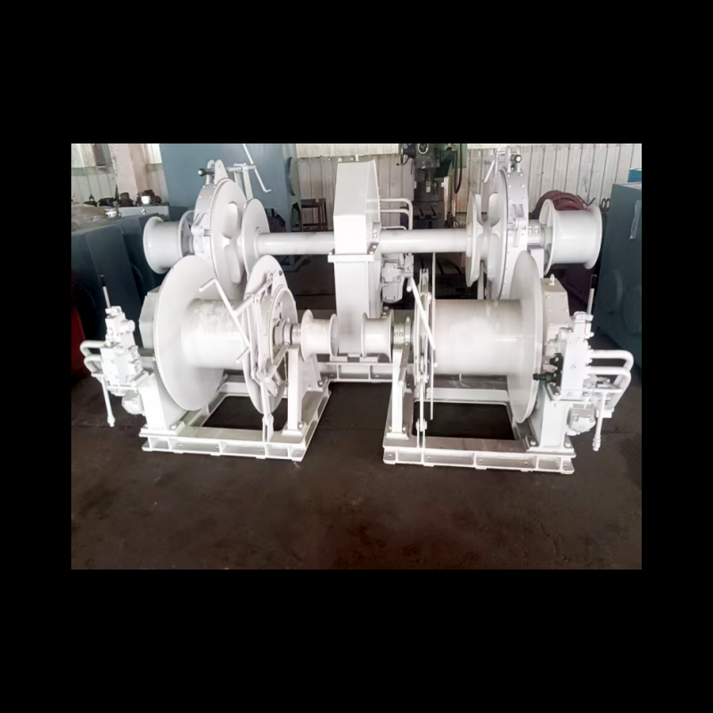 This electric hydraulic windlass is composed of anchor chain wheel, winch drum, main shaft, flange, reducer, Hydraulic motor, etc.