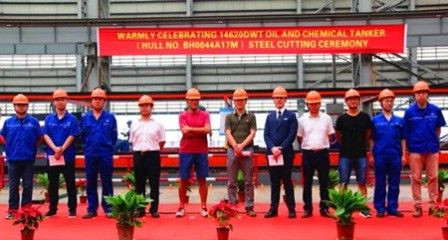 8月26日,武昌造船集團(tuán)為意大利Marnavi公司建造的14620DWT不銹鋼化學(xué)品船正式開工,武昌船廠系1+1+1化學(xué)品船總承包供應(yīng)商,船東代表、RINA船級社經(jīng)理、武船集代表出席了開工儀式。