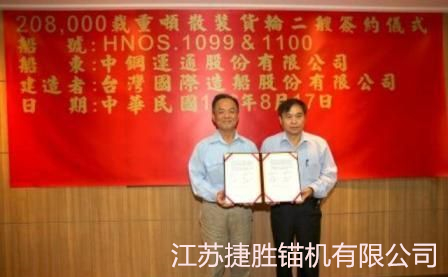 據(jù)專業(yè)的柴動(dòng)錨機(jī)制造廠-江蘇捷勝訊:據(jù)悉,臺船17日與臺灣中鋼集團(tuán)旗下中鋼運(yùn)通正式簽訂兩艘20.8萬載重噸好望角型散貨船(船型 船廠 買賣)建造合同,總造價(jià)9500萬美元,預(yù)計(jì)2019年第3季度交付。