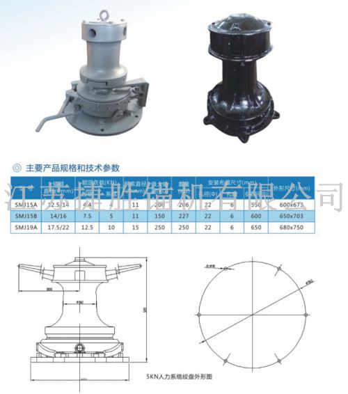 產(chǎn)品按GB/T6918-2005標(biāo)準(zhǔn)設(shè)計、制造。采用手推絞棍。系纜卷筒安裝在豎直軸上運動系纜。