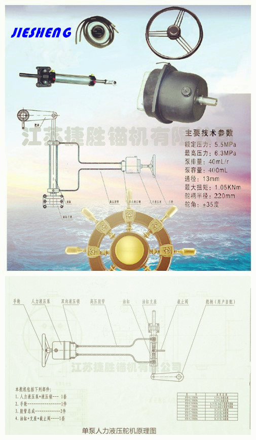 操舵方式:人力手動液壓操舵。